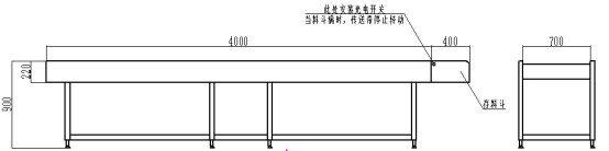 8、存料斗處安裝光電開關,當料斗工件裝滿時,輸送機停止轉動。