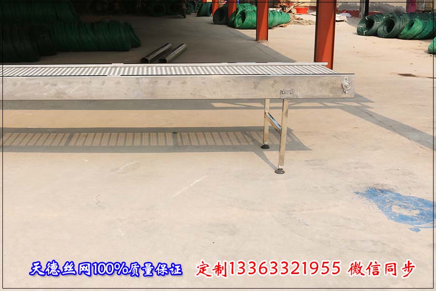 如果輸送物料體積大 、密度大那就要在網帶下方加裝軌道支撐;如果輸送線比較長的話把網帶輸送機分節(jié)來制作而不能做成一條輸送線,因為網帶輸送機超過 30米的話輸送網帶在牽引力下延伸率太大,造成輸送機脫軌或者跑偏。 隨著網帶輸送機優(yōu)點的突出使用領域也越來越廣泛,像現在環(huán)保行業(yè)、 污水處置行業(yè)也很多的用到網帶輸送機。