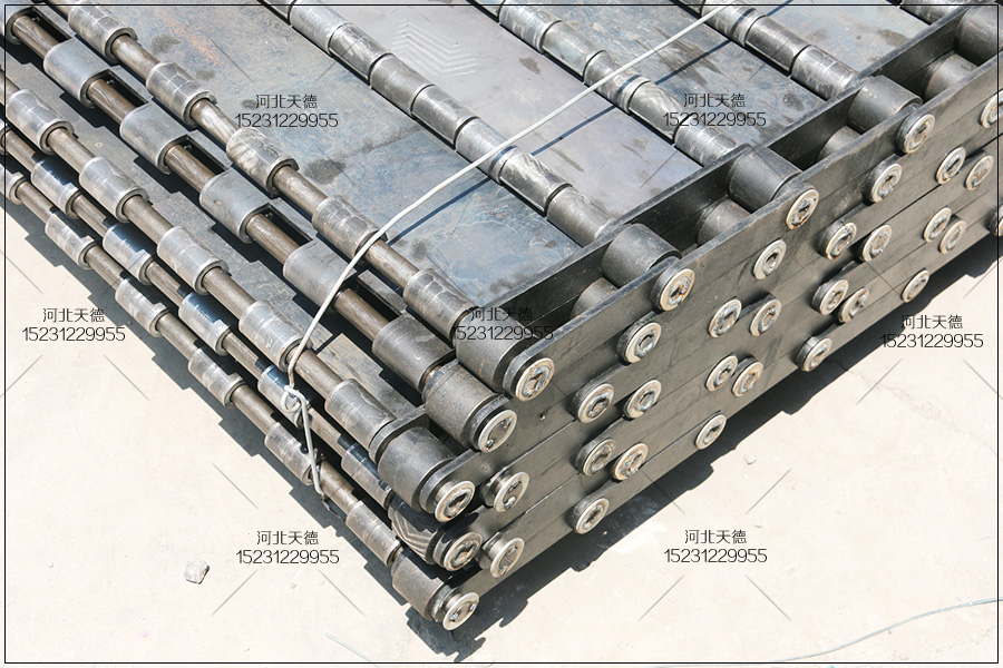 采用10毫米的碳鋼板加工成,節距采用150毫米的,桿采用15毫米的,鏈條與桿都是碳鋼材質的。其載重能力非常的大,成本也很高,