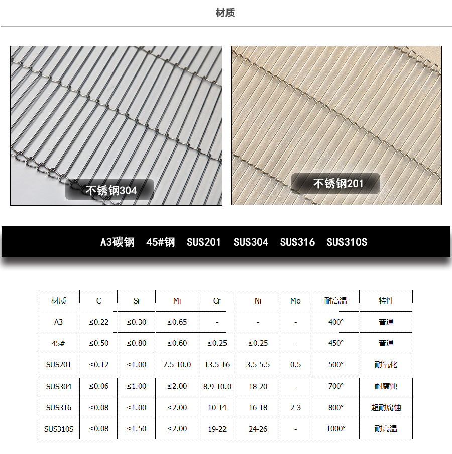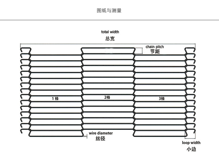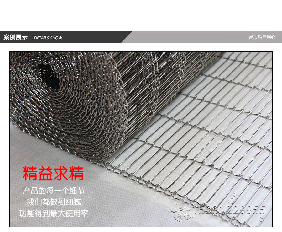 不銹鋼網帶屬于非標準件,我們將根據你提供的規格長寬,材質,不銹鋼絲線徑,編制結構尺寸,支軸直徑,支軸間距,鏈條型號等數據制作.