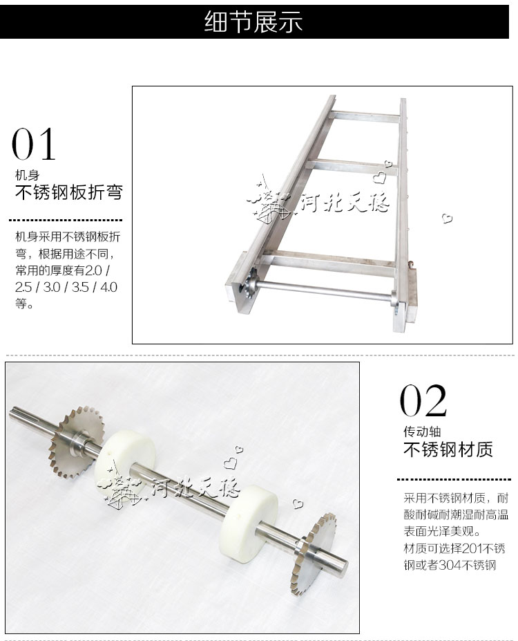 輸送機材質(zhì):有A3低碳鋼、201不銹鋼、304不銹鋼等。